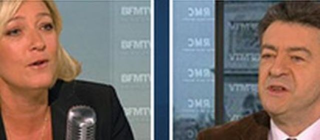 Marine Le Pen et Jean-Luc Mélenchon se sont affrontés ce lundi matin sur BFM-TV et RMC, lors d'un débat d'une heure organisé à quinze mois de l'élection présidentielle. Concurrents sur le thème de la rupture avec «le système», mais porteurs de projets politiques opposés, la présidente du Front national et le coprésident du Parti de gauche sont officiellement candidats à l'Elysée. L'immigration, la laïcité, l'Europe... Le Pen et Mélenchon ont exprimé leurs différences dans un débat particulièrement animé.